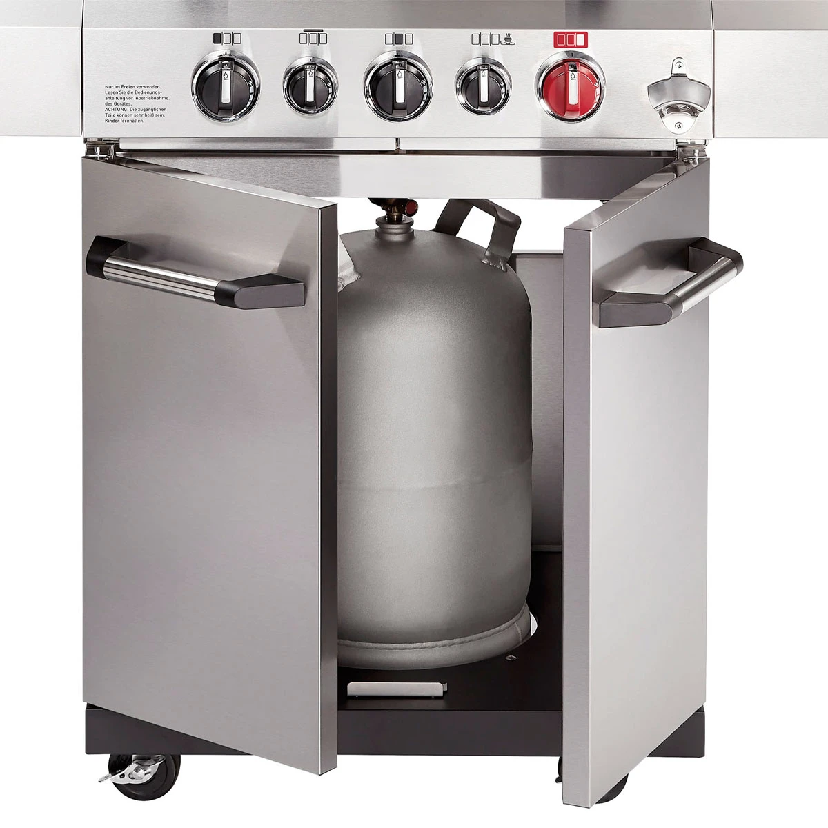 Im Zentrum steht das , welches mit patentierter Technik bei hohen und niedrigen Temperaturen für und sorgt. Außerdem könnt Ihr auf der Eurem Grillgut mit ordentlich Röstaromen Feuer machen. Hier sorgt ein frei regulierbarer 4,2 kW-Brenner für Extra-Power, das spezielle Mesh-Gewebe der Brennerabdeckung heizt zusätzlich mit Infrarot-Hitze ein. Wer auf Spießgerichte und krosse Pizza steht, wird sich über die zusätzliche -Power freuen, die mit 3,5 kW für krosse Grillergebnisse sorgt. Und da auch Beilagen beim BBQ-Menü eine wichtige Rolle spielen, rundet ein mit 3,5 kW die Ausstattung perfekt ab.