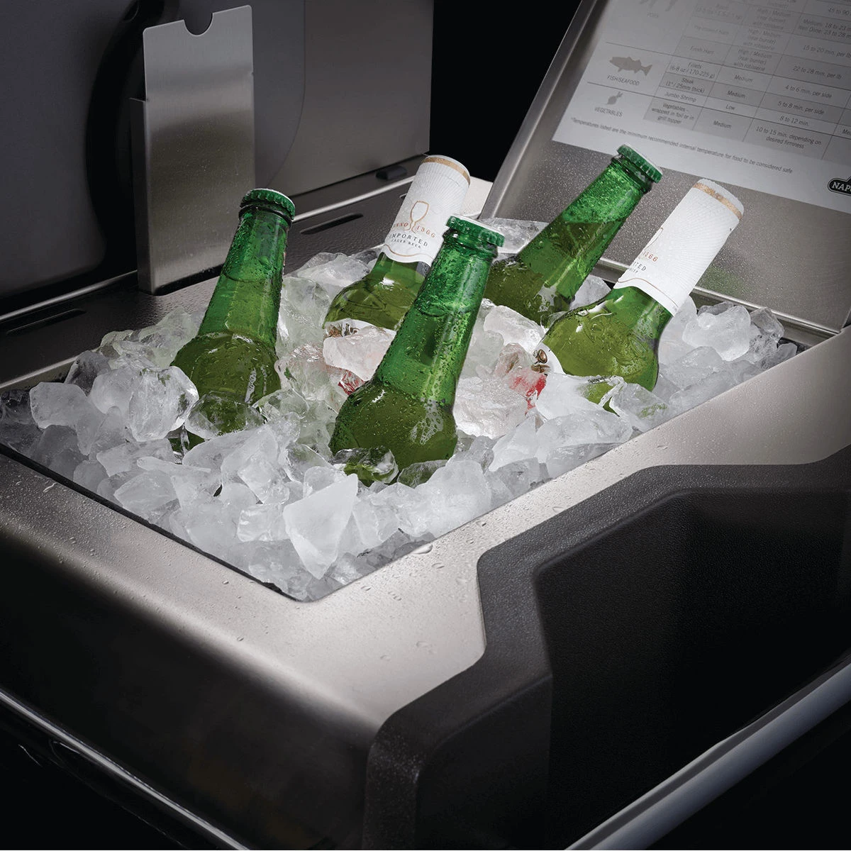 Durch Ablagefläche auf beiden Seitenteilen bietet dieser Gasgrill viel Arbeitsfläche, sogar mit integriertem Schneidebrett und Kühlfach für kalte Getränke mittels Chrushed Ice. Damit stets Ordnung herrscht, ist dieses Modell mit einem Handtuchhalter, Besteckhaken und Gewürzablagen ausgestattet.