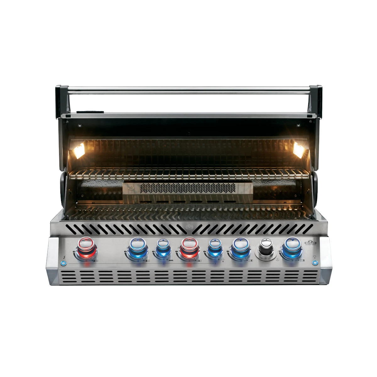 Mit seinen insgesamt 7 Brennern lässt der BIPRO665 keine Wünsche der Grillgourmets offen. Die Edelstahl-Konstruktion sorgt für die Langlebigkeit, Chrom-Akzente für die Schönheit: Der Napoleon Einbaugrillaufsatz Prestige Pro 665 als Einbauvariante mit Erdgasanschluss ist eine Klasse für sich.